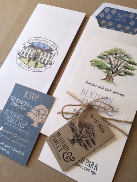 To bring personal touches to the invites we included a watercolour of a special tree at the wedding venue, which couples can be married under.