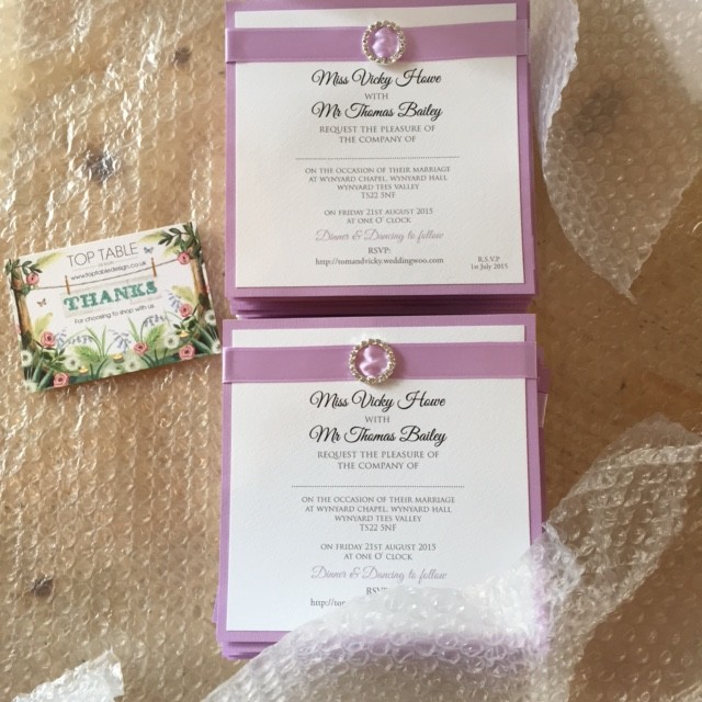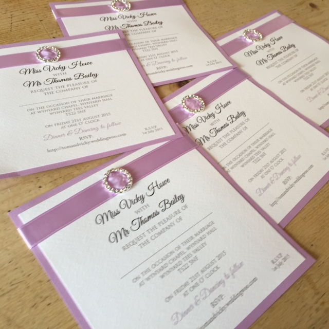 Firstly we designed the invitation, once this was completed and approved by Tom and Vicky we sent off to be printed on some lovely textured card.