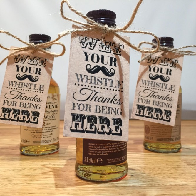 Add a little extra treat for your wedding guests by including miniature drinks bottles and personalised labels to their tables