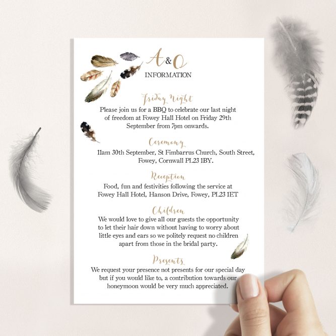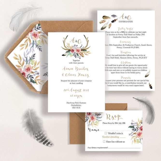 PRICE: Invites From £1.90, RSVPs from £1.15, Information sheets from £1.15 dependant on quantities.