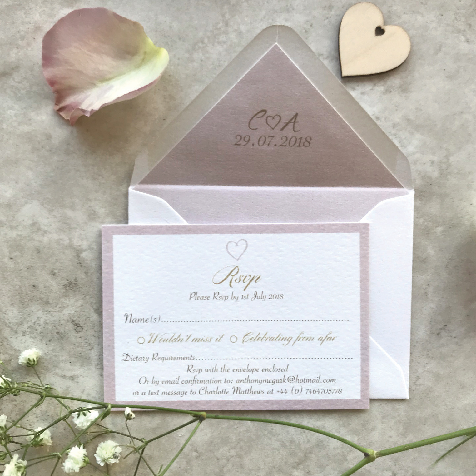 Charlotte & Anthony wanted to adopt a blush and white colour palette to go with their wedding colours. They wanted all their guests names printed on individual invites to add a personal touch to their stationery.