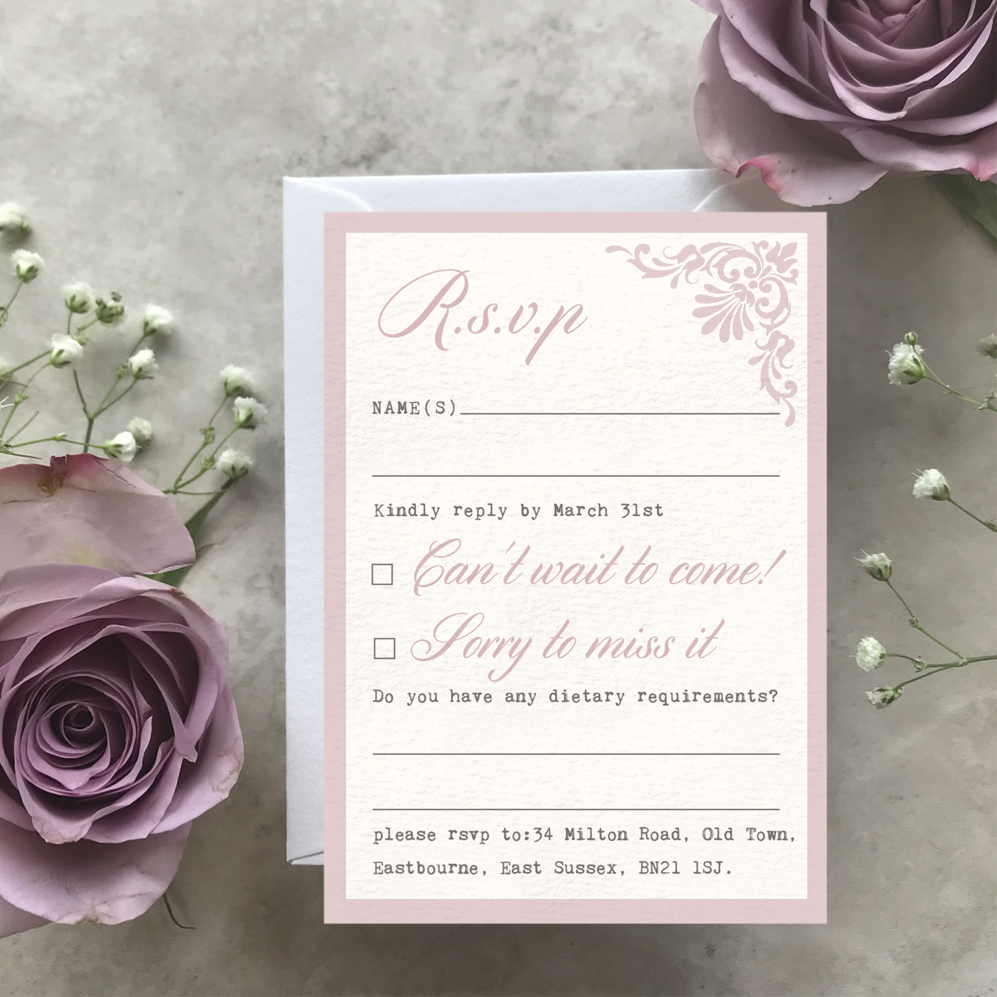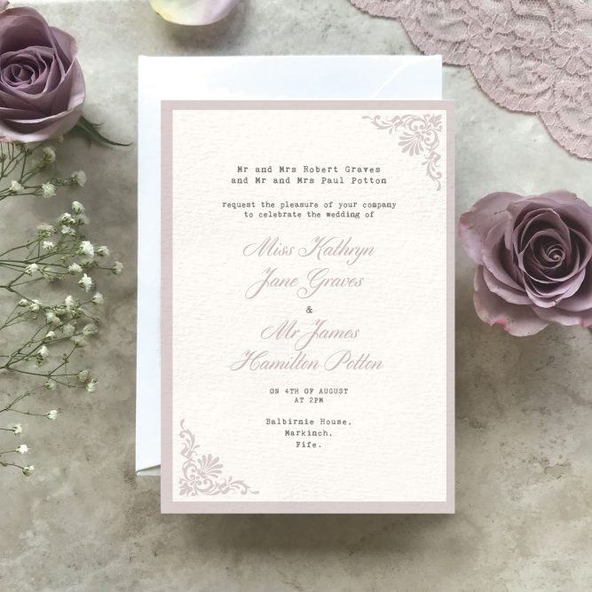 We designed these pretty blush pink and white wedding invitations for Katie and James who wanted something classy and stylish to compliment their wedding day.