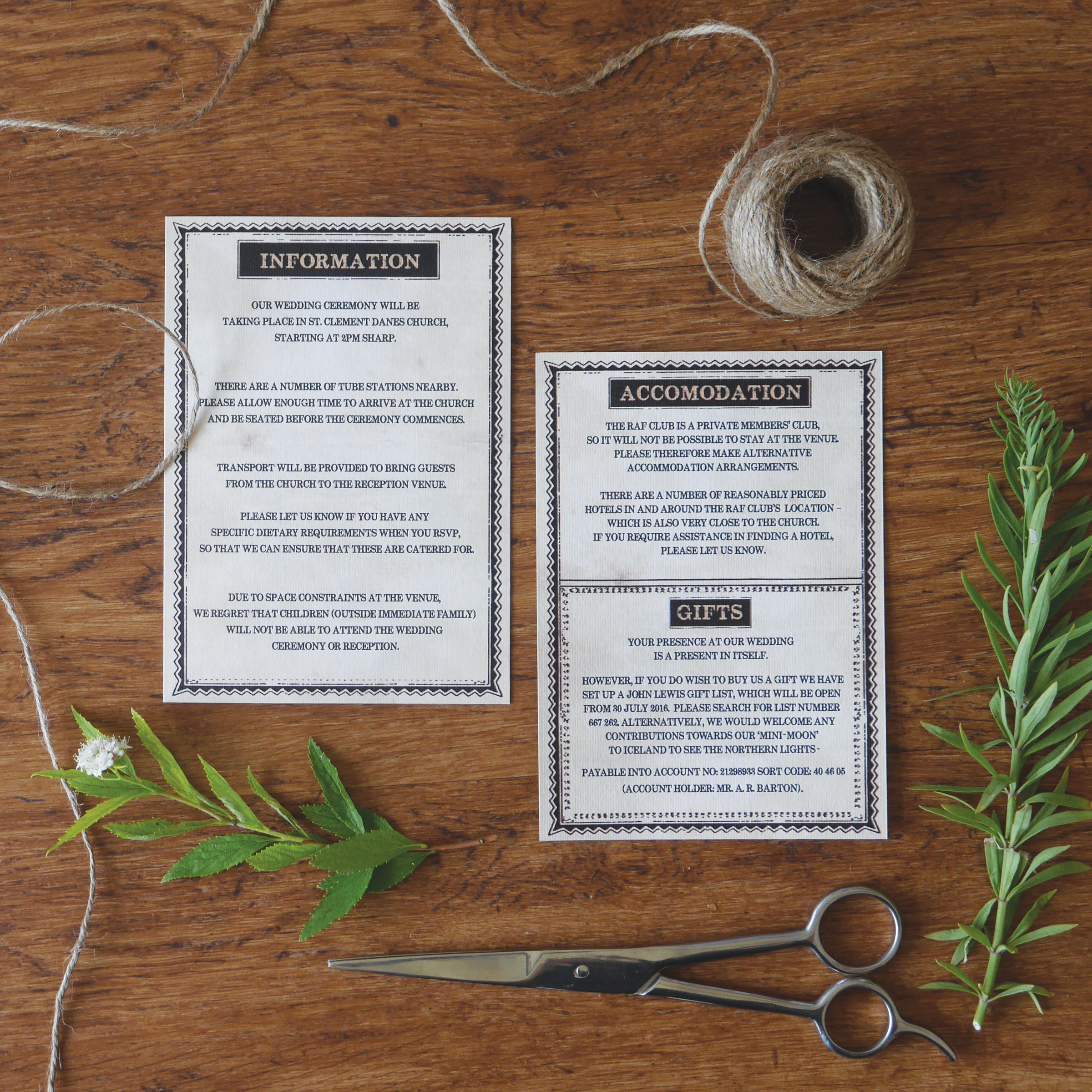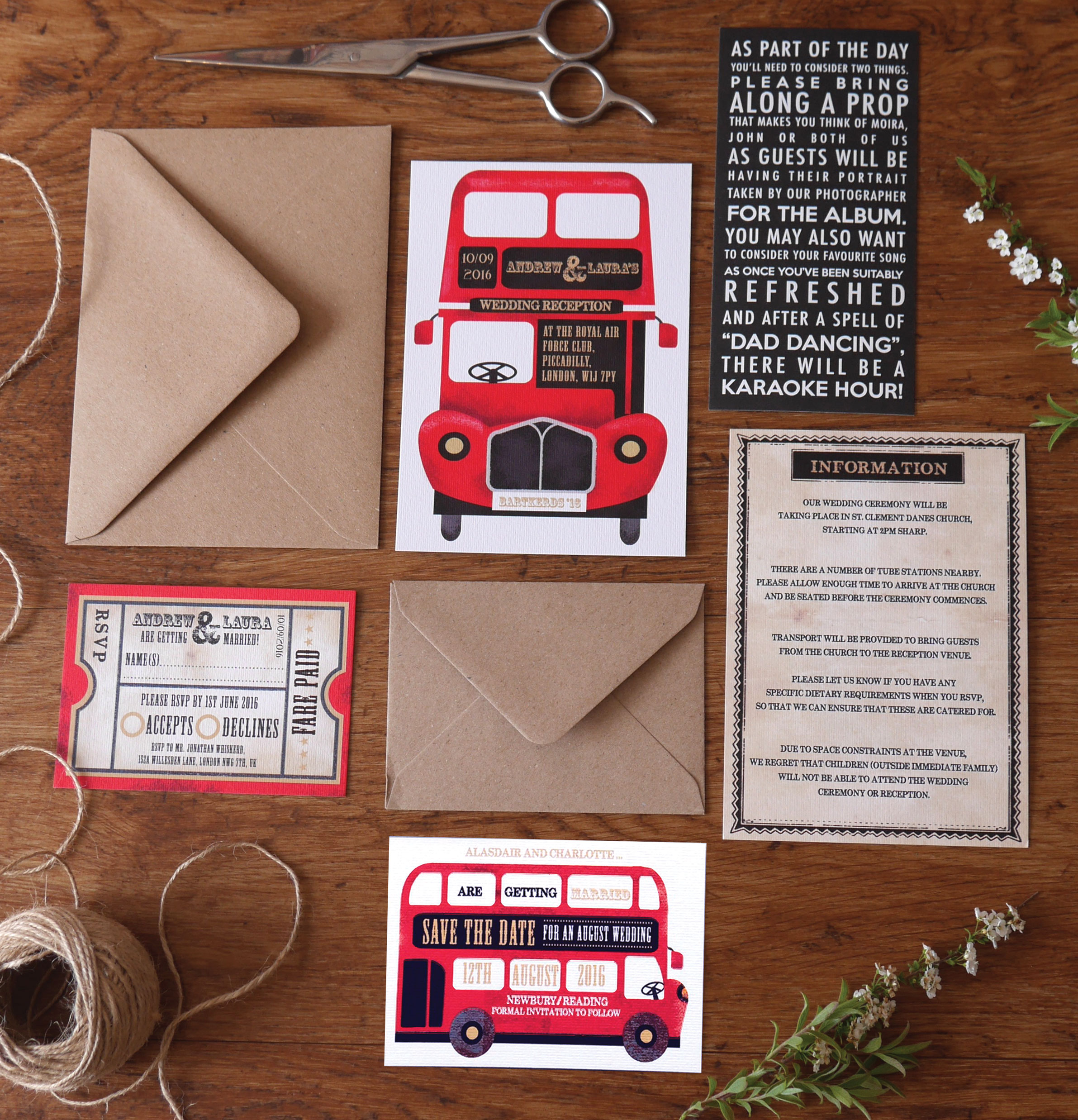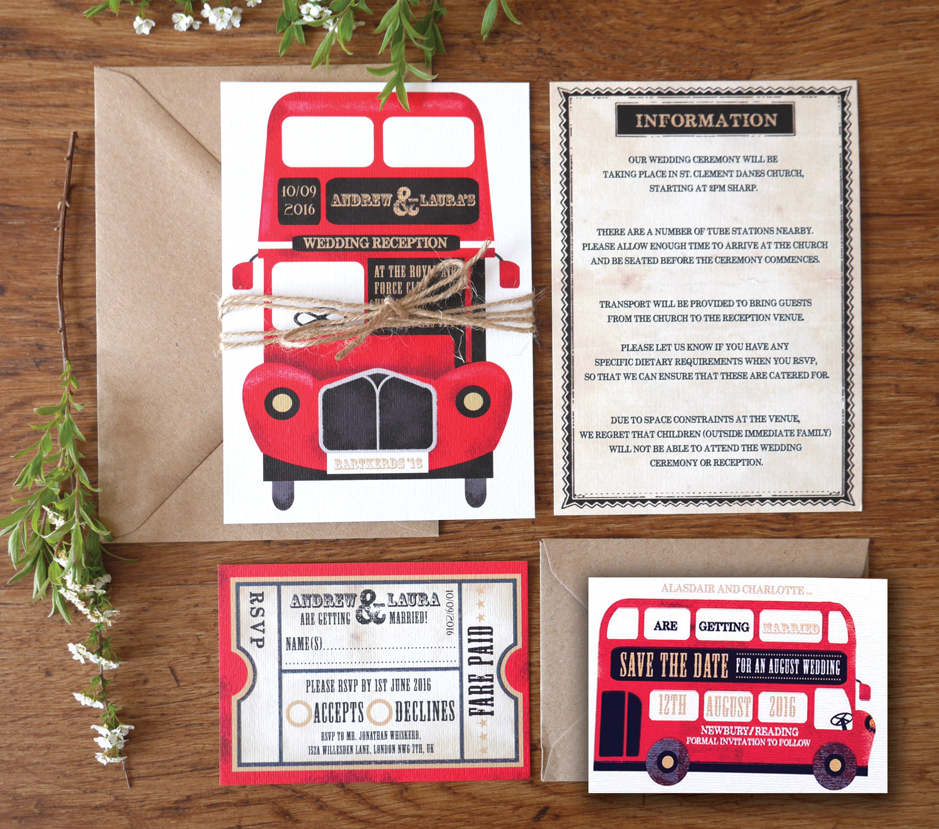 PRICE: Invites From £1.90, RSVPs from £1.15, Information sheets from £1.15 dependant on quantities.