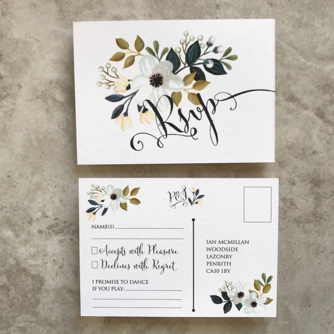 SIZE: Invite – A5 , RSVP – A6 postcard style,