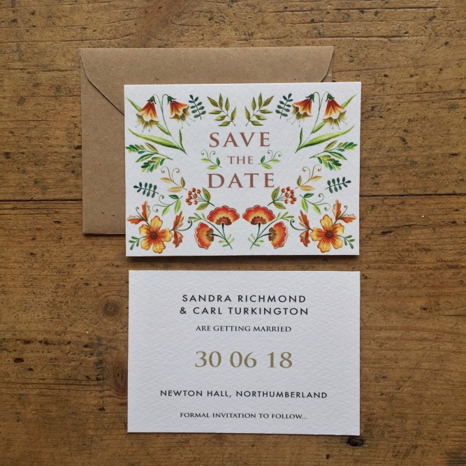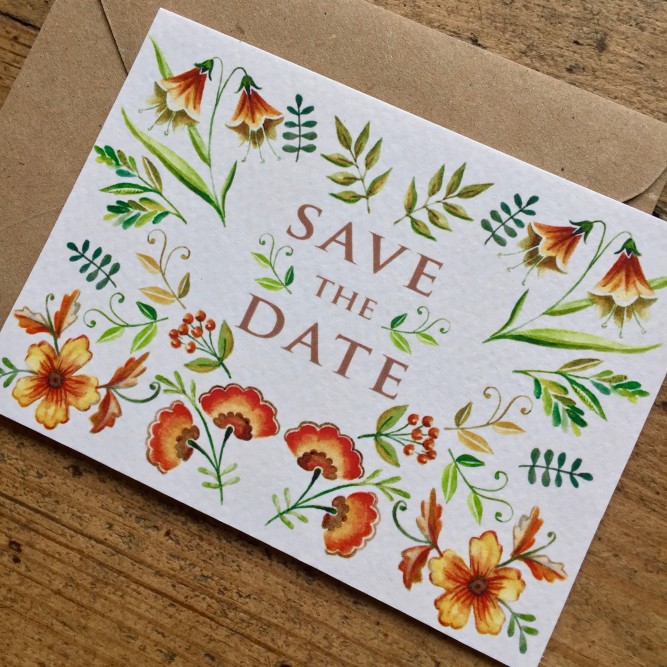 SIZE: Invite – A6 (postcard), Save the date A7, RSVP – A7, Info Card A6