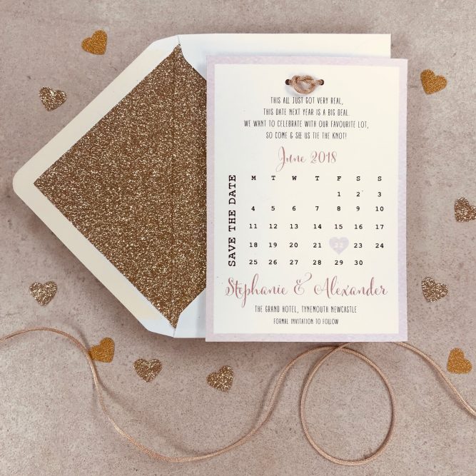 The save the dates featured a small knot in a champagne coloured cord at the top and a small personalised poem underneath about tying the knot. For the invitations the cord was used to tie around the invite with the tag attached, carrying it it across to keep it consistent with the save the dates.